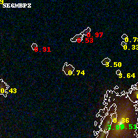 Object #4661 x,y = (3278, 1515) RA, Dec = (00:32:07.992, 18:06:53.64) = (8.03330, 18.11490) BPZ = 0.742 [0.413--0.943] type = 8.10 (SB1_B10 - SB2_B10) chisq2 = 0.47 ODDS = 0.43 z_cluster = 0.396