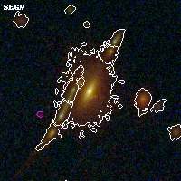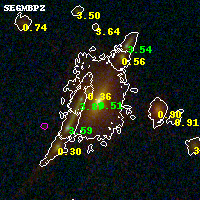 Object #4697 x,y = (3354, 1437) RA, Dec = (00:32:07.656, 18:06:48.96) = (8.03190, 18.11360) BPZ = 0.513 [0.444--0.542] type = 4.10 (Ell4_A_0 - ES0_B10) chisq2 = 0.05 ODDS = 0.96 z_cluster = 0.396