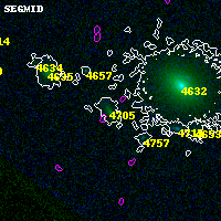 Object #4705 x,y = (1180, 1487) RA, Dec = (00:32:16.824, 18:06:52.20) = (8.07010, 18.11450) BPZ = 0.856 [0.734--1.463] type = 8.40 (SB1_B10 - SB2_B10) chisq2 = 0.00 ODDS = 0.29 z_cluster = 0.396