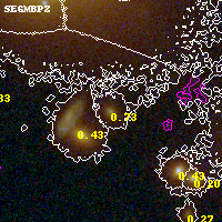 Object #4788 x,y = (2983, 1421) RA, Dec = (00:32:09.216, 18:06:48.24) = (8.03840, 18.11340) BPZ = 0.731 [0.578--0.833] type = 8.00 (SB1_B10) chisq2 = 0.13 ODDS = 0.67 z_cluster = 0.396