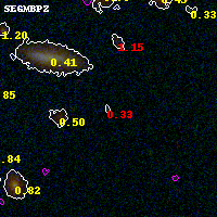 Object #4873 x,y = (1998, 1457) RA, Dec = (00:32:13.368, 18:06:50.40) = (8.05570, 18.11400) BPZ = 0.333 [0.115--3.406] type = 11.00 (SB11_A_0_l) chisq2 = 1.09 ODDS = 0.12 z_cluster = 0.396