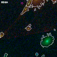 Object #4934 x,y = (3322, 1323) RA, Dec = (00:32:07.800, 18:06:42.12) = (8.03250, 18.11170) BPZ = 0.722 [0.526--1.516] type = 7.00 (Scd_B10) chisq2 = 0.00 ODDS = 0.40 z_cluster = 0.396