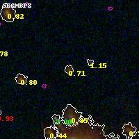Object #4965 x,y = (2001, 1305) RA, Dec = (00:32:13.368, 18:06:41.04) = (8.05570, 18.11140) BPZ = 0.709 [0.394--0.934] type = 8.60 (SB2_B10 - SB1_B10) chisq2 = 0.59 ODDS = 0.37 z_cluster = 0.396