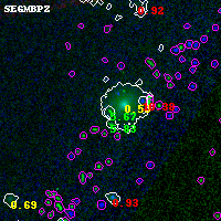 Object #4974 x,y = (3761, 1280) RA, Dec = (00:32:05.952, 18:06:39.60) = (8.02480, 18.11100) BPZ = 5.665 [5.578--5.818] type = 8.30 (SB1_B10 - SB2_B10) chisq2 = 0.00 ODDS = 1.00 z_cluster = 0.396