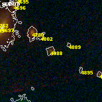 Object #4988 x,y = (3449, 1392) RA, Dec = (00:32:07.272, 18:06:46.44) = (8.03030, 18.11290) BPZ = 3.965 [0.486--4.145] type = 8.20 (SB1_B10 - SB2_B10) chisq2 = 0.51 ODDS = 0.89 z_cluster = 0.396