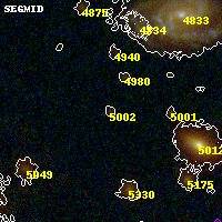 Object #5002 x,y = (2163, 1270) RA, Dec = (00:32:12.672, 18:06:39.24) = (8.05280, 18.11090) BPZ = 0.624 [0.244--1.067] type = 8.90 (SB2_B10 - SB1_B10) chisq2 = 0.62 ODDS = 0.27 z_cluster = 0.396