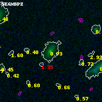Object #5042 x,y = (3494, 1210) RA, Dec = (00:32:07.080, 18:06:35.64) = (8.02950, 18.10990) BPZ = 0.732 [0.654--0.983] type = 5.20 (ES0_B10 - Sbc_B10) chisq2 = 0.00 ODDS = 0.70 z_cluster = 0.396