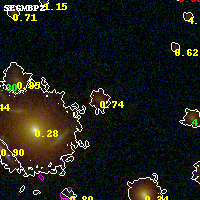 Object #5049 x,y = (2088, 1218) RA, Dec = (00:32:12.984, 18:06:36.00) = (8.05410, 18.11000) BPZ = 0.744 [0.472--0.960] type = 8.00 (SB1_B10) chisq2 = 0.16 ODDS = 0.42 z_cluster = 0.396