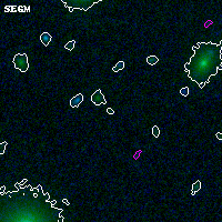 Object #5124 x,y = (3409, 1167) RA, Dec = (00:32:07.440, 18:06:32.76) = (8.03100, 18.10910) BPZ = 0.416 [0.191--4.057] type = 7.90 (SB1_B10 - Scd_B10) chisq2 = 0.28 ODDS = 0.10 z_cluster = 0.396