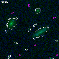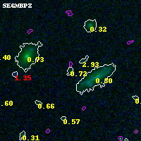 Object #5155 x,y = (3555, 1190) RA, Dec = (00:32:06.816, 18:06:34.20) = (8.02840, 18.10950) BPZ = 0.719 [0.327--1.722] type = 7.70 (SB1_B10 - Scd_B10) chisq2 = 0.03 ODDS = 0.18 z_cluster = 0.396
