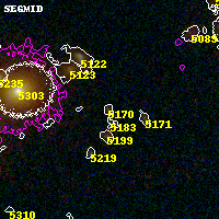 Object #5170 x,y = (1876, 1112) RA, Dec = (00:32:13.872, 18:06:29.52) = (8.05780, 18.10820) BPZ = 3.860 [0.305--4.164] type = 10.10 (SB3_B10 - SB11_A_0_l) chisq2 = 0.54 ODDS = 0.59 z_cluster = 0.396