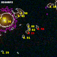 Object #5183 x,y = (1878, 1100) RA, Dec = (00:32:13.872, 18:06:28.80) = (8.05780, 18.10800) BPZ = 1.823 [0.783--2.779] type = 11.00 (SB11_A_0_l) chisq2 = 0.47 ODDS = 0.18 z_cluster = 0.396