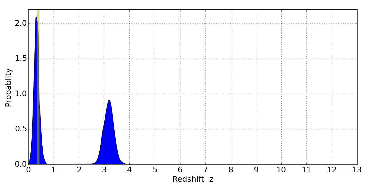 Best viewed in a wide browser window (1200 pixels or more). Download SED & P(z) plots to view larger versions.