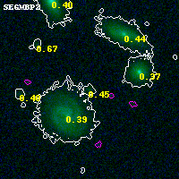 Object #521 x,y = (2238, 4113) RA, Dec = (00:32:12.360, 18:09:29.52) = (8.05150, 18.15820) BPZ = 0.454 [0.258--1.839] type = 6.00 (Sbc_B10) chisq2 = 0.02 ODDS = 0.34 z_cluster = 0.396