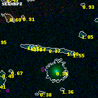 Object #5213 x,y = (2446, 1069) RA, Dec = (00:32:11.496, 18:06:27.00) = (8.04790, 18.10750) BPZ = 0.371 [0.057--3.203] type = 10.30 (SB3_B10 - SB11_A_0_l) chisq2 = 0.04 ODDS = 0.28 z_cluster = 0.396
