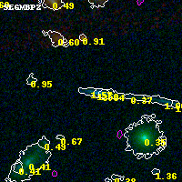 Object #5216 x,y = (2402, 1075) RA, Dec = (00:32:11.664, 18:06:27.36) = (8.04860, 18.10760) BPZ = 1.570 [0.473--2.552] type = 9.70 (SB3_B10 - SB2_B10) chisq2 = 0.01 ODDS = 0.16 z_cluster = 0.396