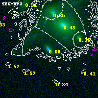 Object #5246 x,y = (3193, 997) RA, Dec = (00:32:08.352, 18:06:22.68) = (8.03480, 18.10630) BPZ = 0.676 [0.573--0.762] type = 7.00 (Scd_B10) chisq2 = 0.00 ODDS = 0.83 z_cluster = 0.396