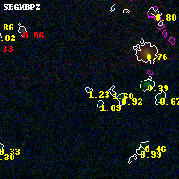 Object #5273 x,y = (1983, 1037) RA, Dec = (00:32:13.440, 18:06:25.20) = (8.05600, 18.10700) BPZ = 1.225 [0.644--2.606] type = 10.80 (SB11_A_0_l - SB3_B10) chisq2 = 0.19 ODDS = 0.12 z_cluster = 0.396