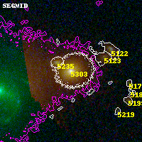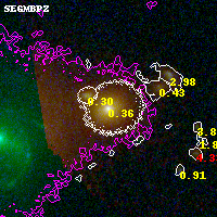 Object #5303 x,y = (1794, 1129) RA, Dec = (00:32:14.232, 18:06:30.60) = (8.05930, 18.10850) BPZ = 0.358 [0.295--0.471] type = 5.10 (ES0_B10 - Sbc_B10) chisq2 = 0.00 ODDS = 0.79 z_cluster = 0.396