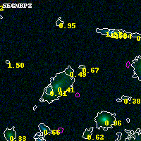 Object #5304 x,y = (2351, 1018) RA, Dec = (00:32:11.880, 18:06:23.76) = (8.04950, 18.10660) BPZ = 0.495 [0.117--2.603] type = 9.00 (SB2_B10) chisq2 = 0.01 ODDS = 0.29 z_cluster = 0.396