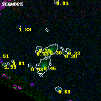 Object #5351 x,y = (1847, 974) RA, Dec = (00:32:14.016, 18:06:21.24) = (8.05840, 18.10590) BPZ = 0.301 [0.225--0.423] type = 5.30 (ES0_B10 - Sbc_B10) chisq2 = 0.01 ODDS = 0.73 z_cluster = 0.396
