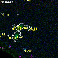 Object #5359 x,y = (1877, 967) RA, Dec = (00:32:13.872, 18:06:20.88) = (8.05780, 18.10580) BPZ = 0.303 [0.151--3.422] type = 9.10 (SB2_B10 - SB3_B10) chisq2 = 0.09 ODDS = 0.21 z_cluster = 0.396