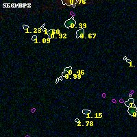 Object #5361 x,y = (2046, 976) RA, Dec = (00:32:13.176, 18:06:21.24) = (8.05490, 18.10590) BPZ = 0.456 [0.219--4.278] type = 6.30 (Sbc_B10 - Scd_B10) chisq2 = 0.08 ODDS = 0.18 z_cluster = 0.396