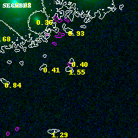 Object #5385 x,y = (3301, 949) RA, Dec = (00:32:07.896, 18:06:19.80) = (8.03290, 18.10550) BPZ = 1.546 [0.188--2.970] type = 9.50 (SB3_B10 - SB2_B10) chisq2 = 0.01 ODDS = 0.10 z_cluster = 0.396