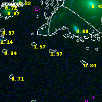 Object #5402 x,y = (3142, 953) RA, Dec = (00:32:08.544, 18:06:20.16) = (8.03560, 18.10560) BPZ = 1.567 [0.580--2.691] type = 10.40 (SB3_B10 - SB11_A_0_l) chisq2 = 0.25 ODDS = 0.13 z_cluster = 0.396