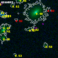 Object #5507 x,y = (2433, 846) RA, Dec = (00:32:11.544, 18:06:13.68) = (8.04810, 18.10380) BPZ = 0.868 [0.608--1.583] type = 8.70 (SB2_B10 - SB1_B10) chisq2 = 0.00 ODDS = 0.22 z_cluster = 0.396