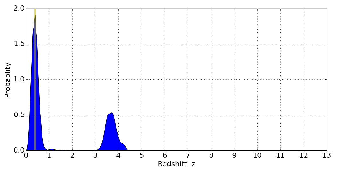 Best viewed in a wide browser window (1200 pixels or more). Download SED & P(z) plots to view larger versions.