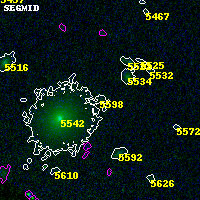 Object #5598 x,y = (2158, 796) RA, Dec = (00:32:12.696, 18:06:10.44) = (8.05290, 18.10290) BPZ = 0.918 [0.657--1.634] type = 9.30 (SB2_B10 - SB3_B10) chisq2 = 0.63 ODDS = 0.29 z_cluster = 0.396