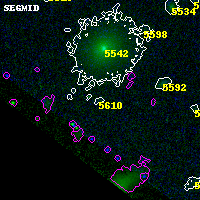 Object #5610 x,y = (2113, 725) RA, Dec = (00:32:12.888, 18:06:06.48) = (8.05370, 18.10180) BPZ = 1.557 [0.486--2.733] type = 10.30 (SB3_B10 - SB11_A_0_l) chisq2 = 0.41 ODDS = 0.12 z_cluster = 0.396