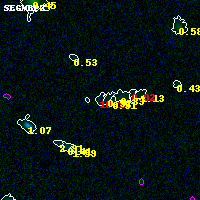 Object #5613 x,y = (2411, 717) RA, Dec = (00:32:11.640, 18:06:05.76) = (8.04850, 18.10160) BPZ = 10.096 [0.775--10.418] type = 10.00 (SB3_B10) chisq2 = 900.00 ODDS = 0.46 z_cluster = 0.396