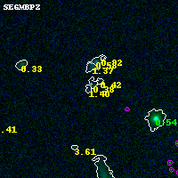 Object #5680 x,y = (3216, 649) RA, Dec = (00:32:08.256, 18:06:01.80) = (8.03440, 18.10050) BPZ = 1.400 [0.222--2.634] type = 9.80 (SB3_B10 - SB2_B10) chisq2 = 0.23 ODDS = 0.11 z_cluster = 0.396