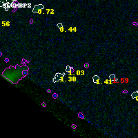 Object #5683 x,y = (2221, 654) RA, Dec = (00:32:12.432, 18:06:02.16) = (8.05180, 18.10060) BPZ = 1.030 [0.592--2.490] type = 10.90 (SB11_A_0_l - SB3_B10) chisq2 = 0.35 ODDS = 0.18 z_cluster = 0.396