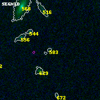 Object #583 x,y = (1745, 4035) RA, Dec = (00:32:14.424, 18:09:24.84) = (8.06010, 18.15690) BPZ = 0.596 [0.205--2.318] type = 8.90 (SB2_B10 - SB1_B10) chisq2 = 0.06 ODDS = 0.13 z_cluster = 0.396