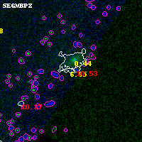 Object #5864 x,y = (3238, 357) RA, Dec = (00:32:08.160, 18:05:44.16) = (8.03400, 18.09560) BPZ = 6.953 [1.000--9.415] type = 10.10 (SB3_B10 - SB11_A_0_l) chisq2 = 0.00 ODDS = 0.34 z_cluster = 0.396