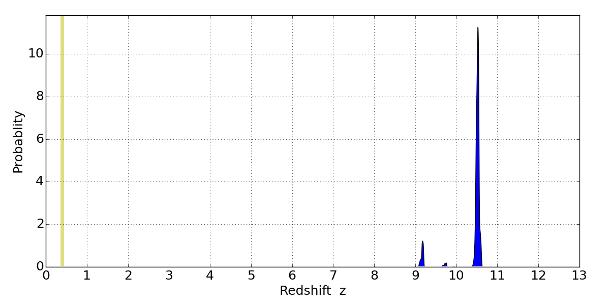 Best viewed in a wide browser window (1200 pixels or more). Download SED & P(z) plots to view larger versions.