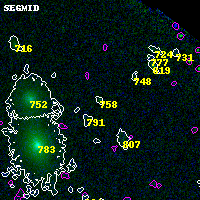 Object #758 x,y = (3341, 3844) RA, Dec = (00:32:07.728, 18:09:13.32) = (8.03220, 18.15370) BPZ = 3.938 [3.422--4.136] type = 10.10 (SB3_B10 - SB11_A_0_l) chisq2 = 0.14 ODDS = 0.72 z_cluster = 0.396