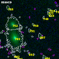 Object #791 x,y = (3328, 3826) RA, Dec = (00:32:07.776, 18:09:12.24) = (8.03240, 18.15340) BPZ = 0.919 [0.538--1.901] type = 10.40 (SB3_B10 - SB11_A_0_l) chisq2 = 3.89 ODDS = 0.40 z_cluster = 0.396