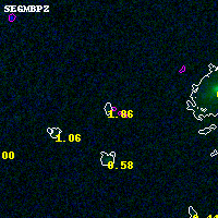 Object #809 x,y = (1498, 3810) RA, Dec = (00:32:15.480, 18:09:11.52) = (8.06450, 18.15320) BPZ = 1.863 [0.199--3.182] type = 9.50 (SB3_B10 - SB2_B10) chisq2 = 0.29 ODDS = 0.11 z_cluster = 0.396