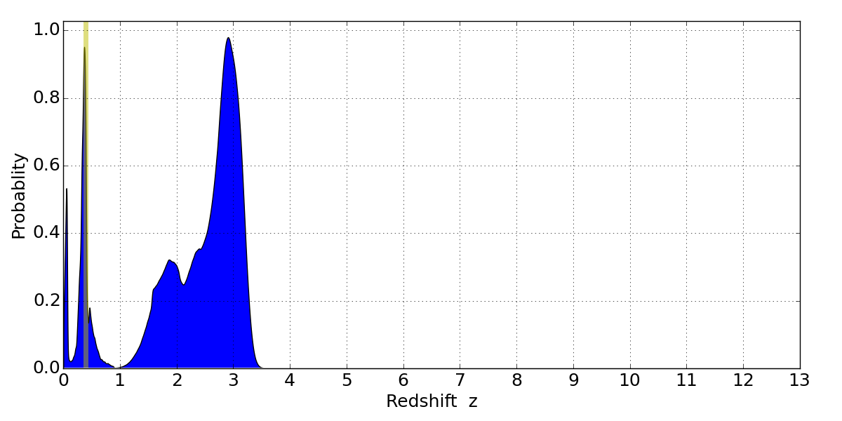 Best viewed in a wide browser window (1200 pixels or more). Download SED & P(z) plots to view larger versions.