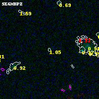Object #925 x,y = (2632, 3716) RA, Dec = (00:32:10.704, 18:09:05.76) = (8.04460, 18.15160) BPZ = 1.054 [0.217--2.655] type = 9.10 (SB2_B10 - SB3_B10) chisq2 = 0.13 ODDS = 0.13 z_cluster = 0.396