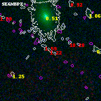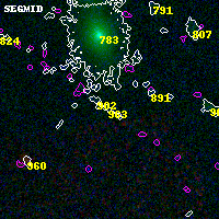 Object #963 x,y = (3287, 3731) RA, Dec = (00:32:07.944, 18:09:06.84) = (8.03310, 18.15190) BPZ = 1.217 [0.945--2.296] type = 11.00 (SB11_A_0_l) chisq2 = 15.09 ODDS = 0.17 z_cluster = 0.396
