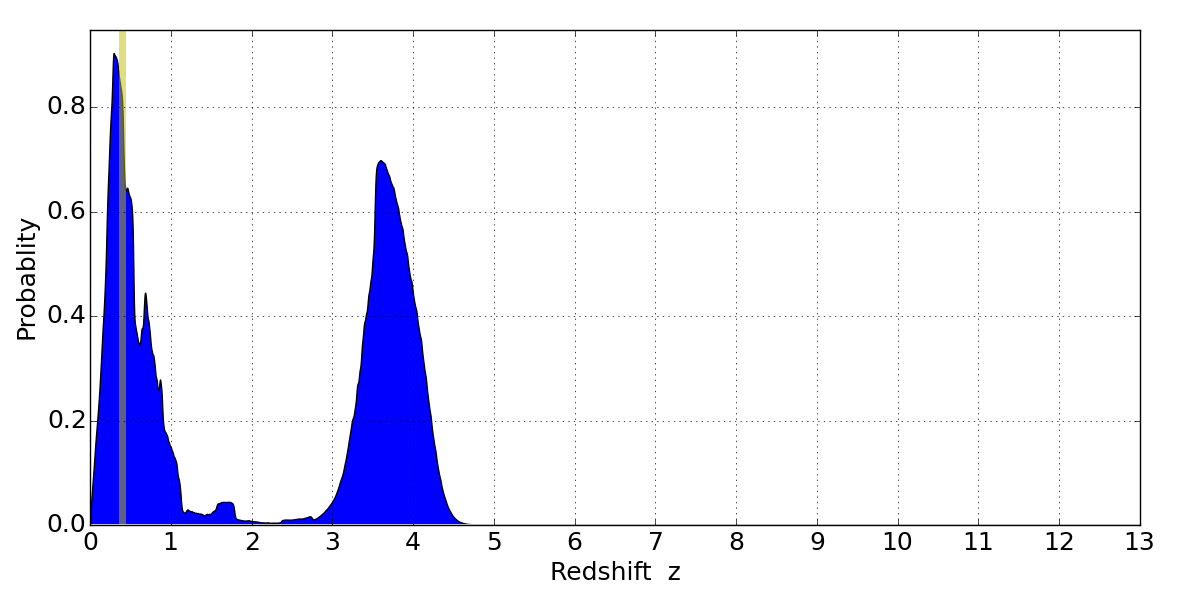 Best viewed in a wide browser window (1200 pixels or more). Download SED & P(z) plots to view larger versions.