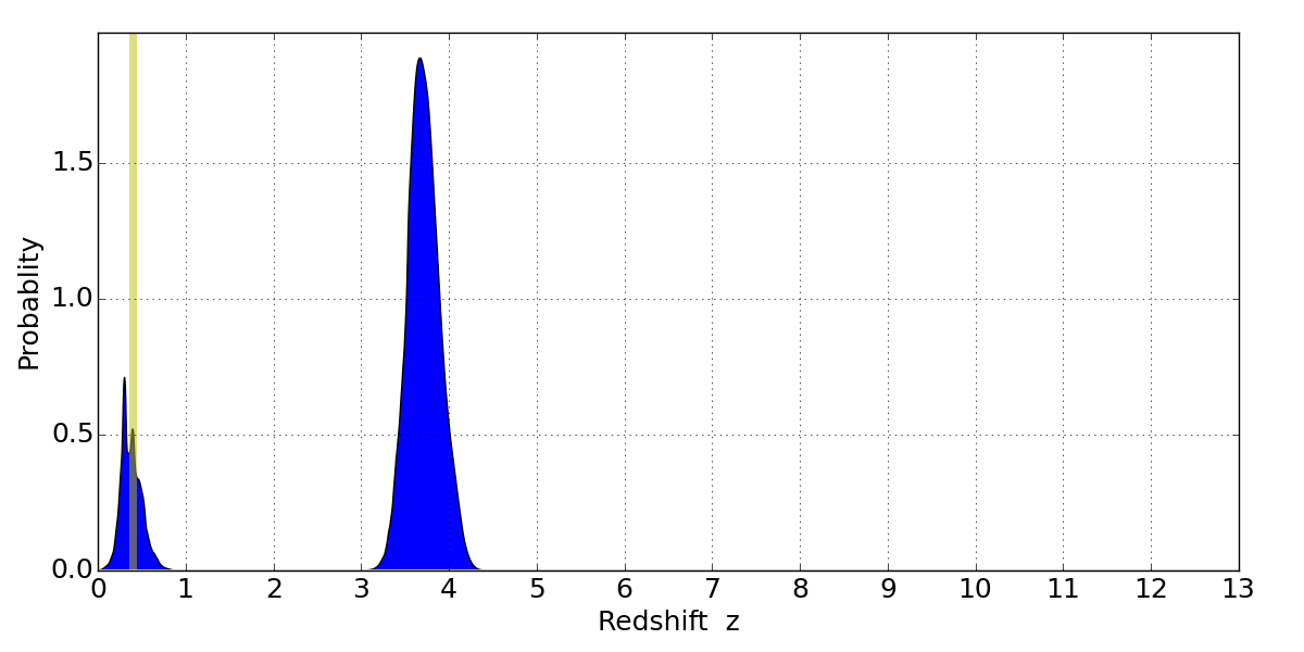 Best viewed in a wide browser window (1200 pixels or more). Download SED & P(z) plots to view larger versions.