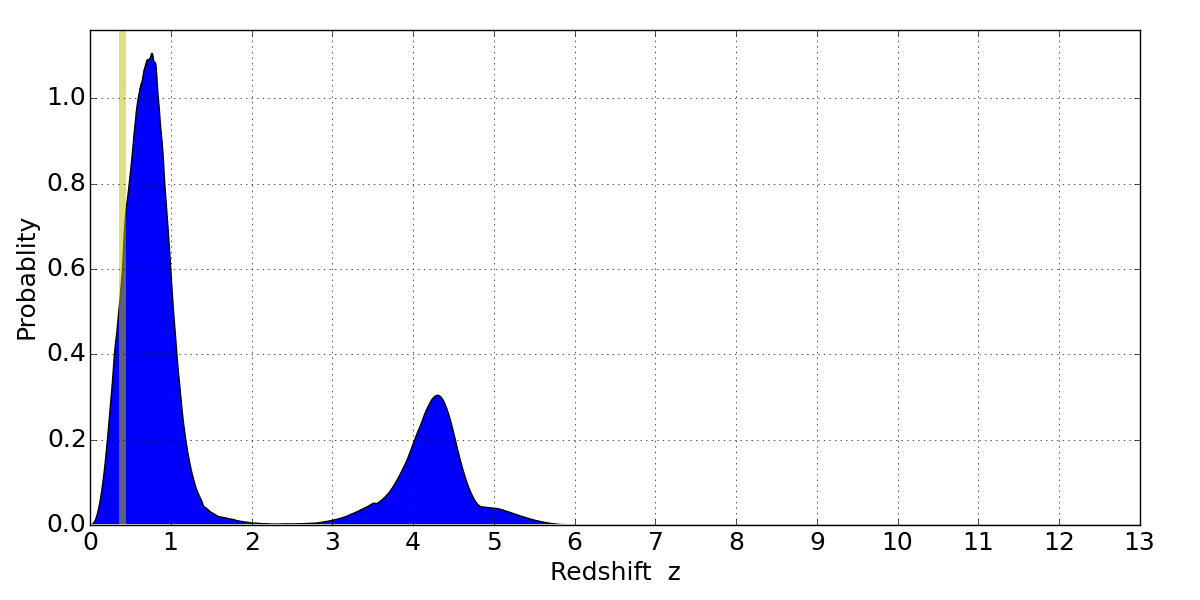 Best viewed in a wide browser window (1200 pixels or more). Download SED & P(z) plots to view larger versions.