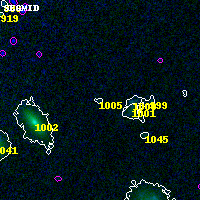 Object #1005 x,y = (1319, 3651) RA, Dec = (00:32:16.224, 18:09:01.80) = (8.06760, 18.15050) BPZ = 1.389 [0.181--3.009] type = 9.30 (SB2_B10 - SB3_B10) chisq2 = 0.16 ODDS = 0.10 z_cluster = 0.396