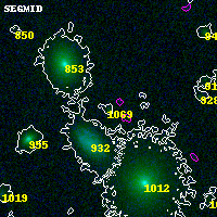 Object #1069 x,y = (2249, 3706) RA, Dec = (00:32:12.312, 18:09:05.04) = (8.05130, 18.15140) BPZ = 0.704 [0.314--1.827] type = 8.70 (SB2_B10 - SB1_B10) chisq2 = 0.03 ODDS = 0.15 z_cluster = 0.396